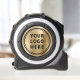 Mesure de ruban moderne pour votre construction, design d'intérieur, remodelage, immobilier ou autre entreprise avec votre logo sur un arrière - plan en or brossé faux métallique.