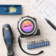 Mètre Ruban Nom monogramme de parties scintillant arc-en-ciel