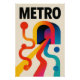 Ein fröhlich psychedelischer U-Bahn-Eingang, wo die Linien zu farbigen, sinusförmigen, organischen Bändern werden. Die städtische Energie wird hier zu einem hellen chromatischen Tanz. Stil: Grafische Pop mit Verwendung von scharfen Degraden, gerundeten Formen und Ludismus. Das Poster für Tyrannei und Ästhetik, inspiriert von den Jahren 80-90, mit einem Retro-Futuristen-Touch. Künstlerische Beschreibung: Drei mehrfarbige Linien (gelb, rosa, turquoise) konvergieren zu einer stilisierten Tunnelarche, die aus umgekehrten Regenbogendegradierungen besteht. Die Rundgänge sprechen von U-Bahn-Stopps, aber auch von Blasen oder Symbolen. Die Typografie METRO dominiert in massivem Schwarz und bildet den Kontrast zum hellen Hintergrund. Ein glänzendes, leichtes, fast euphorisches Poster.