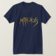 Goldbuchstabe auf einem Blaurückseitenboden. Selbstverständlich können Sie Ihre Shirtfarbe wählen