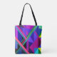"Metropolis Grid: A Digital Reflection". Dieses Kunstwerk erfasst das Wesen der urbanen Energie und übersetzt Formen in einen geometrischen Tanz von Licht und Tiefe, ideal für eine technisch inspiriert Ästhetik mit lila, blauen, grünen und gelben Farbtönen.