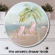 Charmant aquarelle d'une plage pittoresque et sereine — eau / sable / palmiers et votre amical flamngo. Pour toute demande spéciale ou question de design, envoyez un conversation ou un courriel à charmdesignstudio@rcn.com et nous serons ravis de vous aider.