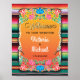Mexican Fiesta "Willkommen zu unserer Hochzeit" Zeichen mit Imitaten Gold Glitzer, Blume und aztec Teppich Hintergrund Alle Angaben können geändert werden