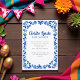 Celebrate the arrival of your little one with this beautiful "Cielito Lindo" baby shower invitation. Featuring a vibrant blue floral border inspired by traditional Talavera patterns, this design adds a touch of Mexican charm to your special occasion. The elegant script for "Cielito Lindo" and clear "Baby Shower" text make it easy for guests to read. This invitation is perfect for honoring expectant parents Maria and Carlos Guadalupe, and setting a festive tone for your event. It's an ideal choice for a memorable baby shower celebrating new beginnings. this is part of a set that has books for baby and responce card for a more formal feel.