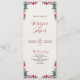 Dieses mexikanische Blumenmuster Botanische Blume Hochzeitsprogramm zeichnet sich durch eine hohe vertikale Anordnung mit einem cremefarbenen Hintergrund aus, gerahmt durch verzierte Blumenmuster in den oberen und unteren Ecken. Die Blumen sind fett und farbenfroh, mit tiefroten, Blues, Rosa, Gelb und Grüntönen, die durch dunkle Äste hervorgehoben werden, die eine lebendige, aber ausgewogene Grenze schaffen. Der zentrale Bereich ist sauber und offen verlassen und eignet sich ideal, um Text, Einladungen oder Veranstaltungsdetails hervorzuheben und dabei einen eleganten, volkstümlich inspirierten Charme zu bewahren.