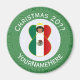 Runder Magnet für die Weihnachtsdekoration mit einem Engel in der Flagge Mexikos gekleidet. Der Engel befindet sich in einem weißen Fraktal von quadratischen Quadraten mit einem Hintergrund von grünen quadratischen Quadraten. Fügen Sie, wenn Sie möchten, Ihren eigenen Text hinzu. Personalisieren mit einem Namen und anpassen mit dem Jahr. Spaß kleine Geschenk. Ehre dein mexikanisches Erbe während der Feriensaison.