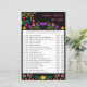 Shoe Game für Hochzeit oder Paare Dusche, mit mexikanischem Fiesta-Design, personalisiert mit dem Namen der Braut und Bräutigam. Farbenvolles Blumendesign mit Blume im Stil der Volkskunst in Rosa, lila Rot und Gelb. Das Ratings-Spiel hat 20 Fragen, die Sie gerne bearbeiten können.
