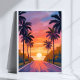 Miami Beach Sunset Palm Tree Tropical Poster Painting