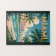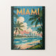 Miami Retro Vektor Reise Design. Von der farbenfrohen Art-Déco-Architektur von South Beach bis hin zu den geschmackvollen Straßen von Little Havanna bietet Miami eine elektrische Mischung aus Stil, Kultur und Küsten-Schönheit.