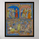 Eine mittelalterliche Illustration aus der Kreuzfahrerbibel, auch bekannt als die Morgan Picture Bibel, die aus dem 13. Jahrhundert stammt. Das französische Gotische Manuskript zeigt Szenen aus dem Alten Testament. In der Szene oben wird David die Hand von Michal, König Sauls Tochter, angeboten. Die unterste Szene ist David, der gegen die Philister kämpft, um Michals Hand zu gewinnen. Ein großes Geschenk für jemanden, der sich für die Geschichte und Kunst des Mittelalters interessiert.