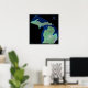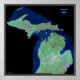L'état du Michigan depuis l'espace est représenté dans cette carte/impression satellite brillante. Les données de cette photo satellite ont été améliorées sur le plan topographique afin de mettre en évidence les caractéristiques du terrain. En outre, cette carte satellite a des lignes de comté (pas de noms), les noms de certaines grandes régions métropolitaines et le drapeau de l'État.