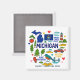 Commemorate your trip to the state of Michigan with this modern keepsake magnet, featuring hand-drawn style illustrations of iconic food, animals, landmarks, landscapes, and culture. Personalize it to mark your U.S. adventure and create a memory you can hang up on the fridge and gift to your family members.