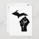 Eine Karte von Michigan mit einer Faust anstelle der Handlung. Solidarität für Michigan.