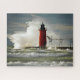 Der rote Leuchtturm aus Michigan mit einem Laufsteg im Sturm. Das Lighthouse befindet sich in South Haven, Michigan.