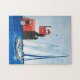 Aquarellbilder eines Segelbootes, das den Hafen in Holland, Michigan, verlasse.
