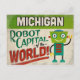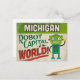Eine lustige Reisepostkarte im Michigan-Jahrgang mit einem freundlichen Roboter im Retro-Stil, der sagt: "Michigan, Roboter-Hauptstadt der Welt!"