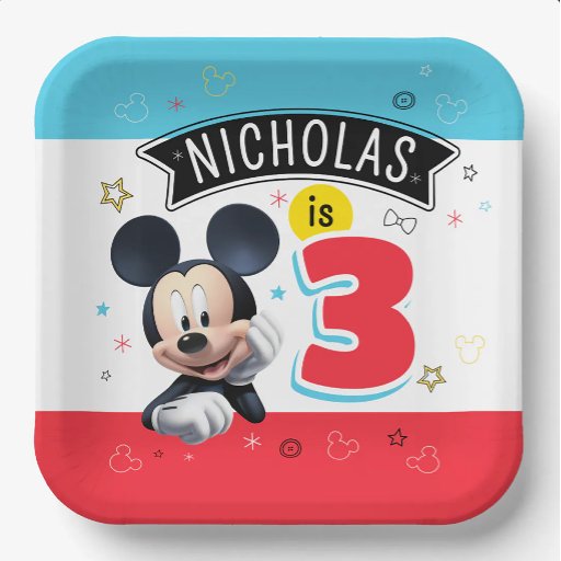 Mickey's Fun Birthday Collection sticker. Celebrate your child with this fun Mickey Mouse Themed Birthday Party with custom decorations, thank you cards, signs, banner, favor tags and stickers!