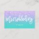 Eine elegante moderne, stilvolle microblading Geschäftskarte des Make-upkünstlers mit eleganter Skripthandbeschriftungs-Arttypographie im Weiß auf einem lila Lavendel-Glitter der Imitatmeerjungfrau und trendy und eleganten einem Hintergrund des Türkises. Wenn Sie irgendeine Kundenbezogenheit benötigen, zögern Sie nicht, wenn Sie mit mir in Verbindung treten