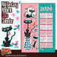 Mid-Century Cats Calendar Kitchen Towel Pink + Aqu Geschirrtuch