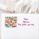 These return address labels have a mid-century modern design of rectangles with a white hole in retro colors.