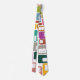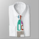 Diese Krawatte hat ein modernes Design von Rechtecken mit einem weißen, in Retrofarben gehaltenen Loch.
