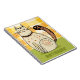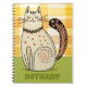 Niedliches Notizbuch mit einer anmutigen Abbildung einer Kätzin in Stilen der Mitte des Jahrhunderts, Retro, abstrakte Kunst. Der Hintergrund der Abbildung ist ein gelbes Karo Muster. Verwenden Sie die Registerkarte Text anpassen, um Ihren Namen oder einen anderen Text hinzuzufügen, der unter dem Bild der Katze liegt.