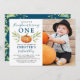 Midnight Blue Fall Pumpkin First Birthday Foto Einladung