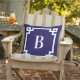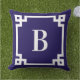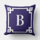 Midnight Blue Greece Key Border Monogram Kissen