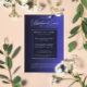Für Paare, die eine einfache und elegante Ästhetik für ihre Hochzeitskunst bevorzugen, sind die kleinen marineblauen Einladungen eine beliebte Wahl. Navy Blau ist eine vielseitige und raffinierte Farbe, die mit verschiedenen Designelementen kombiniert werden kann, um atemberaubende und zeitlose Einladungen zu schaffen. Die Primärfarbe ist marineblau, die als Hintergrund verwendet wird. Um das minimalistische Aussehen zu erhalten, wird häufig zusätzlich Farbe Weiß aufgenommen. Minimalistische Einladungen zeichnen sich in der Regel durch eine saubere und moderne Typografie aus. Sans-Serif-Schriftart mit schlichten Linien und einfacher Schrift vermitteln ein elegantes und raffiniertes Ambiente. Die Gestaltungselemente werden auf ein Minimum behalten, um die Einfachheit der Einladung zu bewahren. Die minimalistische Gestaltung wirkt oft recht geräumig, wodurch das Design sauber und puristisch wirkt. Die wesentlichen Details, wie die Namen des Paares, Datum, Uhrzeit und Veranstaltungsort, sollten klar und lesbar dargestellt werden. Erweitern Sie das minimale marineblaue Thema auf andere Hochzeitsauflagen, z. B. RSVP-Karten, Informationskarten und Umschläge. Ein konsistenter Blick über alle Stücke wird die Ästhetik insgesamt verstärken. Wählen Sie Umschläge in einer ergänzenden Farbe, wie Elfenbein oder Hellgrau, um das minimale Thema zu erfüllen. Denken Sie daran, dass die Schönheit der minimalistisch marineblauen Hochzeitsfeiern in ihrer Einfachheit und Eleganz liegt. Durch die Verwendung einer raffinierten Farbpalette, einer sauberen Typografie und subtilen Designelementen erreichen Sie eine Einladungssuite, die den Ton für eine stilvolle und anspruchsvolle Hochzeitsfeier Set.