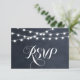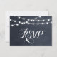 Midnight Blue String Lights Wedding RSVP Card Karte