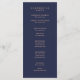 Dieses moderne und elegante Hochzeitsprogramm besticht durch Rose auf einem dunkelblauen Hintergrund, wobei oben ein goldener Streifen der Imitate Rose zu sehen ist.