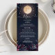 Erleben Sie Ihr Hochzeitsessen mit dieser Hochzeitskarte "Midnight Garden Moon". Dieses Menü mit blühendem Vollmond und reich bordeauxfarbenen Blumenakzenten Set die perfekte Stimmung für einen Abend oder eine Hochzeitsfeier. Das dunkle und elegante Design ergänzt romantische oder im Garten inspirierte Räumlichkeiten. Die Speisekarte ist übersichtlich und leicht zu lesen, was Ihren Hochzeitstischen Eleganz verleiht. Diese Hochzeitskarte bereichert nicht nur das Erlebnis Ihrer Gäste, sondern wird auch zu einem unvergesslichen Vergnügen für Ihren besonderen Tag.