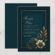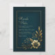 Set a tone of timeless elegance with this sophisticated botanical design. The deep, velvety midnight navy background acts as a dramatic backdrop for shimmering gilded illustrations, featuring intricate gold leaf branches and delicate metallic floral blooms. The rich texture of the gold against the moody blue canvas creates a high-end, luxury aesthetic that catches the light beautifully. A crisp, minimalist gold border frames the botanical arrangement, adding a touch of modern polish to the organic, nature-inspired composition. This design captures the quiet beauty of a moonlit garden, making it an unforgettable choice for a refined celebration. This wedding invitation is perfect for formal evening ceremonies, black-tie galas, or elegant starlit receptions.
