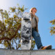 Black and white broken skull with a chilling Halloween vibe. Bold contrasts and cracked details add a haunting, edgy atmosphere.