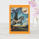 Celebrate Halloween with a dash of mystery and magic. This unique greeting card features a bold black cat confidently riding a fantastical, wingless collage-colored horse through a surreal twilight sky. Perfect for those who love imaginative, Afrocentric, and dreamlike visuals, this card blends seasonal spirit with artistic flair. Send it to someone who appreciates the unexpected and the extraordinary.