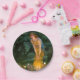 Paper Teller mit Edward Robert Hughes Malerei Midsommer Eve (1908). Eine schöne Frau in einem goldenen Kleid steht inmitten eines Feenkreises. Kleine Feen halten farbenfrohe Lichter. Der Schleier zwischen der menschlichen Welt und der Märchenwelt ist am dünnsten während der Sommerferien. Ein wunderbares Geschenk für Märchenfreunde und britische Kunst.