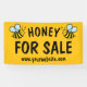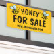 Signe de bannière de miel à vendre pour l'apiculture. Ajoutez votre propre site Web ou numéro de téléphone. Faites pivoter la flèche vers la gauche ou la droite. Vendre du miel et des produits connexes de son apiaire, jardin, maison, ferme, marché, magasin, épicerie, bureau, entreprise, entreprise, maison, apiculteur, etc. Simples signalétique de route perceptible avec logo d'abeille à bosse et couleur arrière - plan jaune. Matériel de commercialisation apicole.