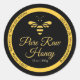 Abeille de miel jaune élégant sur arrière - plan noir avec bordure jaune. Nom du produit écrit dans une police décorative.