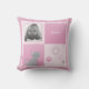 Niedliches graues Kätzchen und grafische Blumen verzieren dieses Kissen, mit weißen Polkapunkten und rosa Hintergrund. Sie können sie mit dem Foto und dem Namen Ihr Kindes besonders anfertigen.