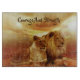 Eine schöne Darstellung des mächtigen Löwen und der Löwen mit Worten Mut und Kraft auf einem Glasschneidebrett. Phantastische Darstellung für Tier- und Naturliebhaber. Wir können dies auf unsere Reaktion in schwierigen Zeiten in unserem Leben, Mut und Kraft anwenden!