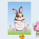 Mignonne lapin de Pâques avec oeuf de Pâques et des fleurs Carte. Le texte peut être personnalisé pour Pâques ou Anniversaire. Les lapins symbolisent la longévité, l'abondance et la bonne fortune.
