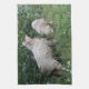 Cette superbe serviette de cuisine est ornée d'une photo d'une paire de mignons moutons moelleux. Les moutons sont entourés de fleurs sauvages et d'herbe longue, et se tiennent sous un arbre et s'approchent, mangeant avec cupidité quelques feuilles. Ils ont des épais manteaux blancs en laine et des visages très mignons.