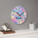 Toutes uniques, les filles mignonnes chambre monogramme décoration murale horloges dans un arc-en-ciel moderne brillant de couleurs sous forme d'hologramme numériquement imprimé sur le visage de l'horloge comme art abstrait dans une variété de couleurs qui pop. Fait une grande horloge murale pour une chambre pour filles, chambre bébé, ou adolescent.