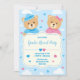 Préparez-vous à révéler le genre de votre bébé avec cette invitation à la révélation de genre de mignonne ours! Doté d'adorables nounours garçons et filles aux coeurs roses et bleus, ce design ludique et doux est parfait pour votre soirée révélateur de genre. Éditable et imprimable, idéal pour les baby showers, les célébrations jumelles ou les événements d'arrosage de bébé.