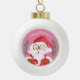 Un ornement de balle blanche avec un Père Noël mignon en train d'enfoncer sur un arrière - plan rose. Customisez avec votre propre texte ou laissez-le tel quel. © ArianeC Illustrations-Tous droits réservés