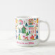De jolies maisons de Noël qui sont festives et colorées décorent cette tasse de café de vacances amusante. Des petites maisons dans la neige blanche se mêlent à des arbres décorés d'étoiles dans cette agréable scène de couloirs hivernaux. La motif d'aquarelle est d'origine rétro, populaire à ce jour. La bande de texte autour du bas est entièrement modifiable. Assurez-vous d'échanger les mots pour inclure les noms de famille et la date que vous voulez, ou une autre salutation de votre choix si vous préférez quelque chose d'autre à "Joyeux Noël" que nous avons là.