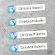 Étiquettes de vêtements mettant en vedette un empreinte de patte blanc sur un arrière - plan d'aquarelle violet et bleu aqua et votre nom ou autre texte personnalisé.