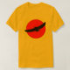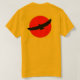 Ein Schwarzes, hochfliegender Kondor vor einer orange Sonne auf einem gelben T - Shirt.