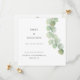 Zeitgenössischer minimaler Stil, um Ihre Gäste wissen lassen, dass Sie eine kleinere Micro-Hochzeit haben, und sie einzuladen, um Ihr neues Datum retten, mit einem Single Zweig von eleganten grünen Eukalyptus-Blätter, die auf der rechten Seite fließt und die Typografie an die links. Ein Eukalyptusblatt für den Single befindet sich oben über dem Text auf der Rückseite. Personalisieren Sie den Text auf beiden Seiten einfach.