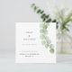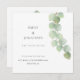 Zeitgenössischer minimaler Stil, um Ihre Gäste wissen lassen, dass Sie eine kleinere Micro-Hochzeit haben, und sie einzuladen, um Ihr neues Datum retten, mit einem Single Zweig von eleganten grünen Eukalyptus-Blätter, die auf der rechten Seite fließt und die Typografie an die links. Ein Eukalyptusblatt für den Single befindet sich oben über dem Text auf der Rückseite. Personalisieren Sie den Text auf beiden Seiten einfach.